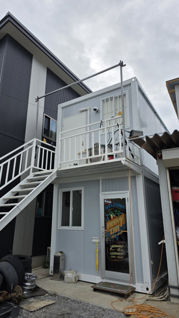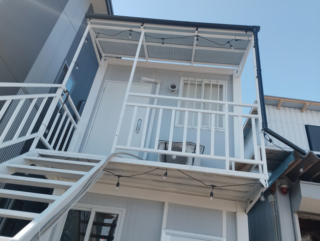 雨が降ると下にぽたぽたと垂れてくるので、2階事務所に屋根を取り付けました🙆