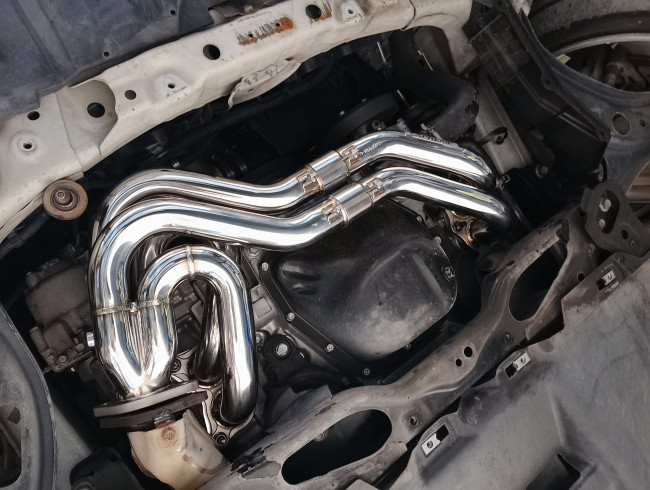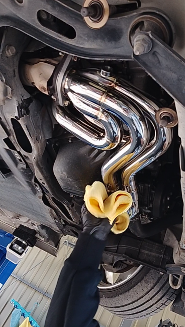 新しいエキマニを装着中!