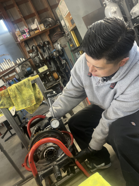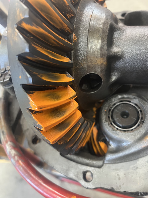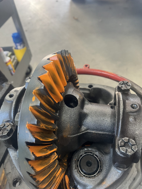 リングギアとピニオンギアの歯当たりを確認しながらバックラッシュ調整とピニオンデプス調整を行います✋