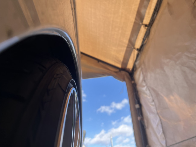 でも、このままではデフ幅の関係により、タイヤがフェンダー内に収まらずはみ出てしまう...
