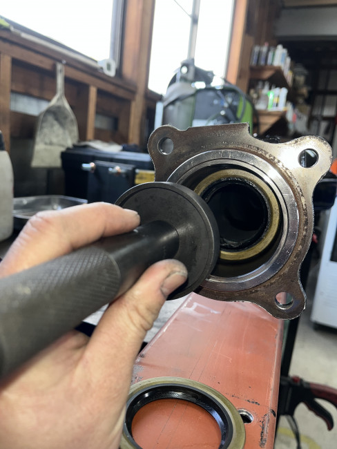 全ての調整・締結作業が終了したため、最終工程としてアクスルシャフトのインナーシールを新品へ交換します🚐