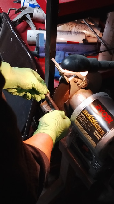 再使用するボルトはベンチグラインダーで錆取り🔩