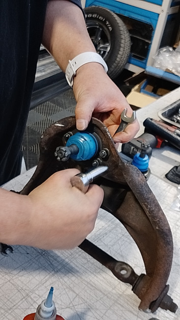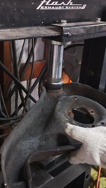 ロワーボールジョイントはプレスで圧入👊