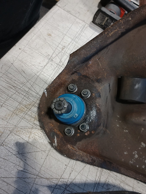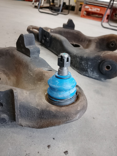 新車時のボールジョイントはリベット固定されています。ということは、、、87年式なので39年間交換していません('Д')