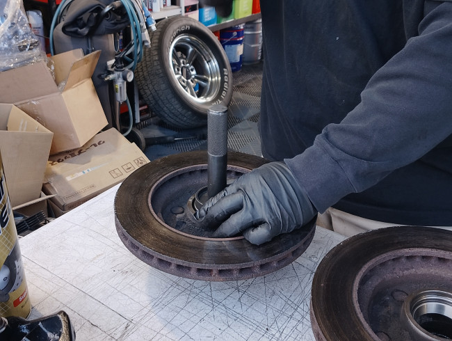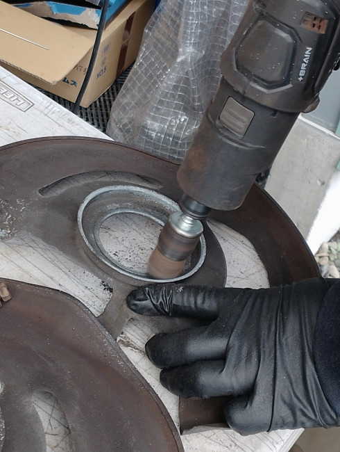 再使用するバックプレートの当たり面を電動ワイヤーブラシで清掃👍