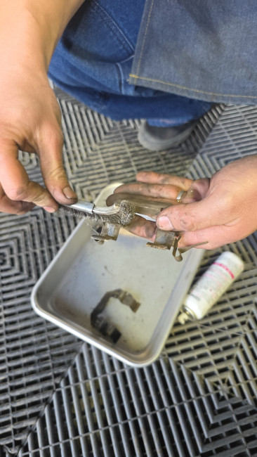 ブレーキパッドクリップをワイヤーブラシで清掃。