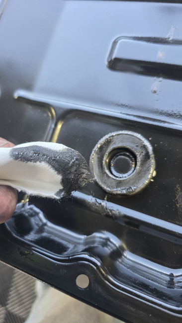 その後、オイルパン内部に溜まった汚れを清掃!