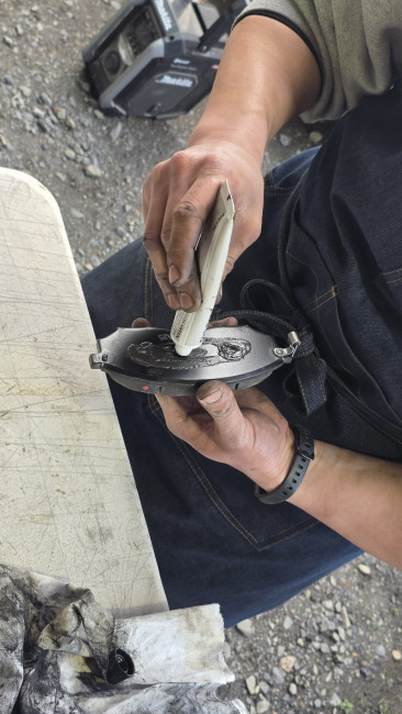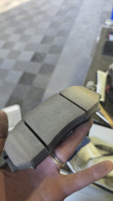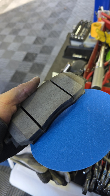 新しいブレーキパッドの面取り。