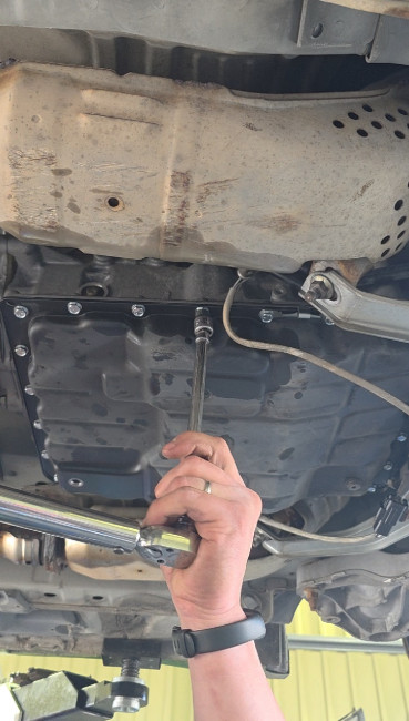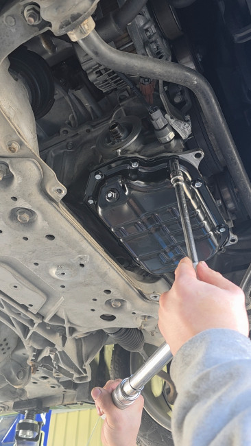 次は、ATFストレーナー交換・オイルパン清掃の作業へ('ω')ノ