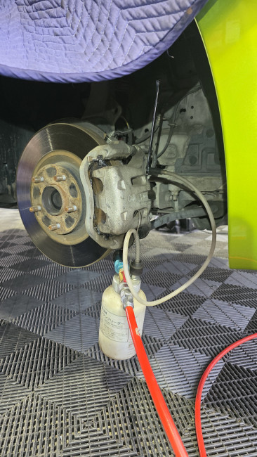 最後に、ブレーキのエア抜きを実施💁♀️ブレーキ内部に入った空気を抜きながらフルードを入れ替えていきます!ペダルの踏み応えと制動力が正常な状態になりました♬
