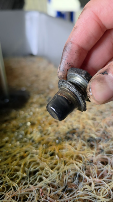 ドレーンしてみると、、、めちゃくちゃ乳化していました('Д')