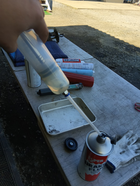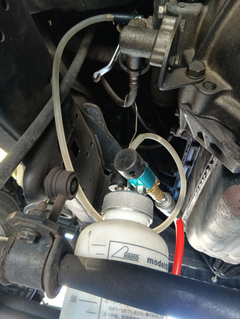 クラッチペダルは依然フカフカなのでレリーズシリンダーからエアーを抜きます💨