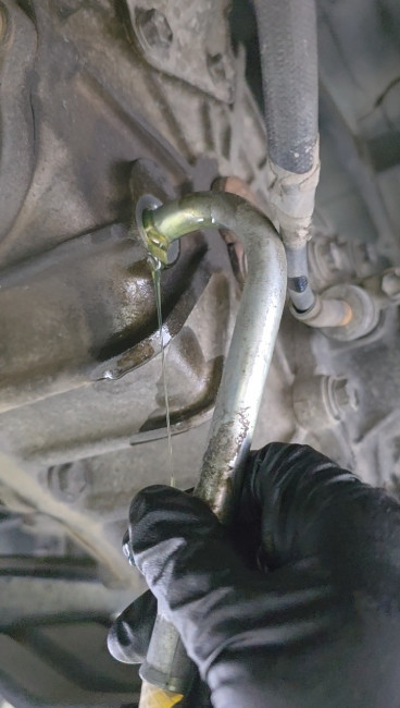 排出されたオイルの汚れや状態を確認しながら、しっかりと抜いていきます👀