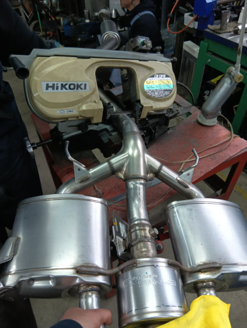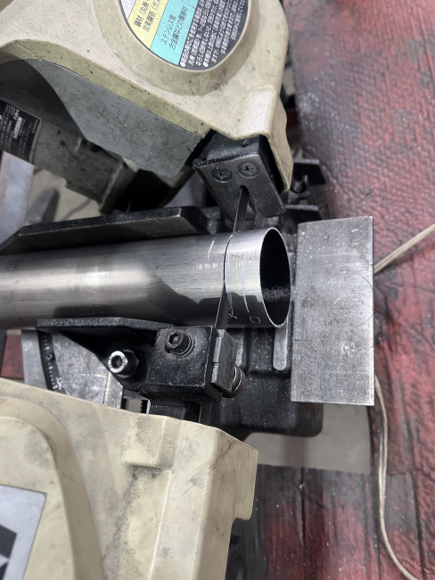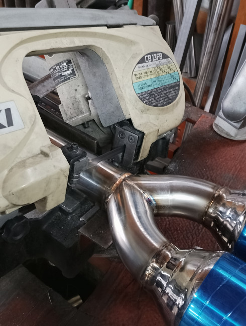 車両への収まりや排気ラインの自然な流れを意識して切断🪚