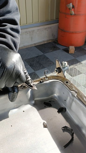 スクレーパーで取り除いた後は、仕上げに電動ワイヤーブラシを使って残った汚れを除去!