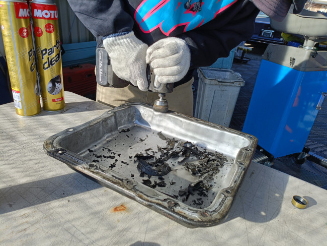 👆オイルパン内のマグネットに付着した鉄粉