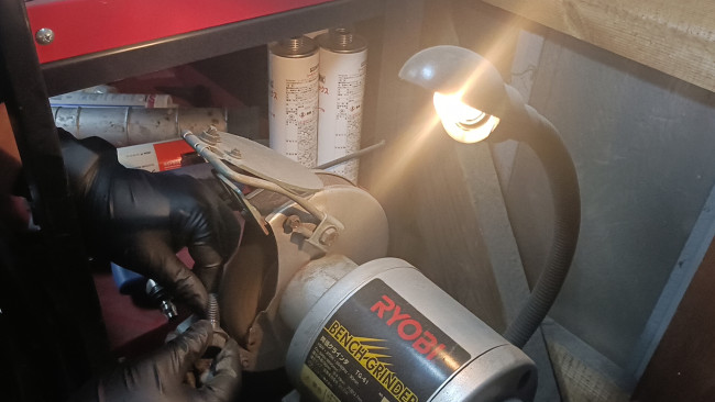再使用するボルトは、汚れやサビなどをベンチグラインダーで除去!