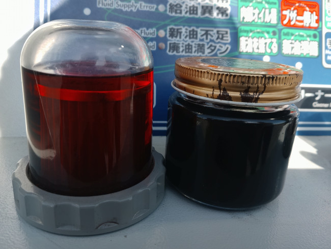 クリーニング1回目終了時点ではフルードの色が濃く、まだ汚れや濁りは残っています💦