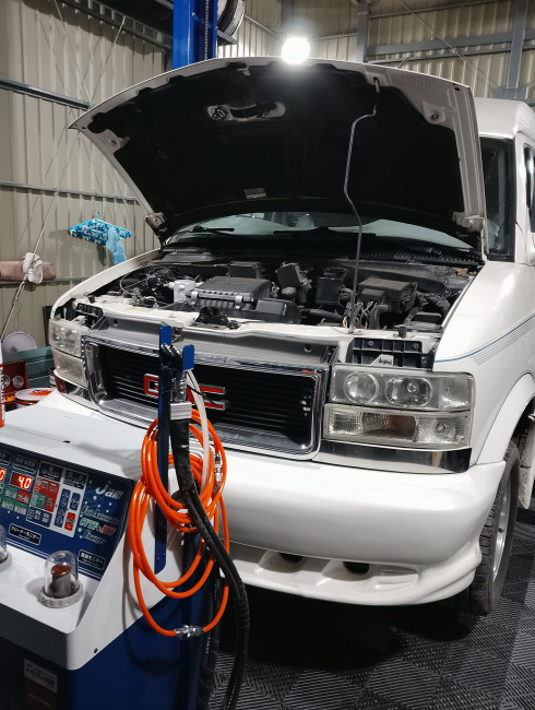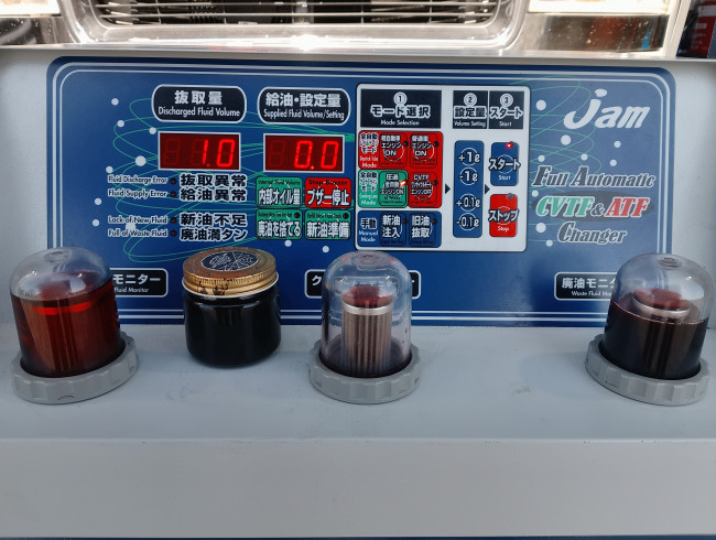 まずは機材を接続し、新しいATFをセット!ここから古いフルードを排出しながら、新油へとしっかり入れ替えていきます✊